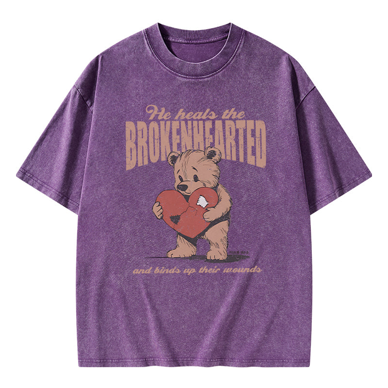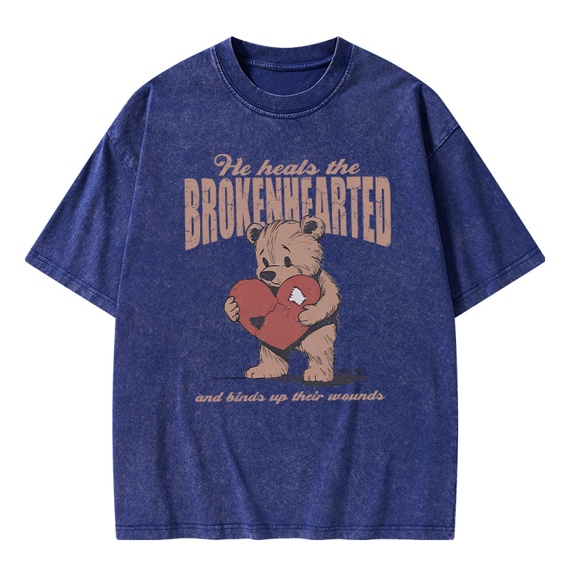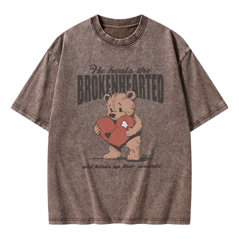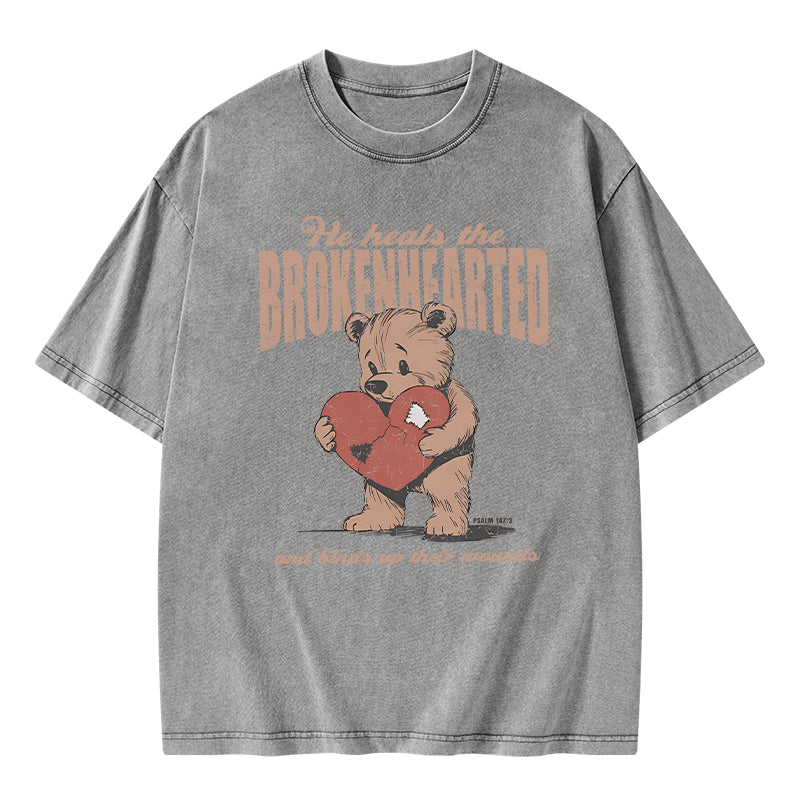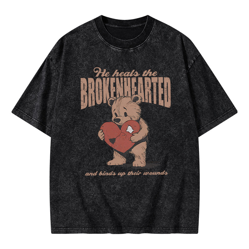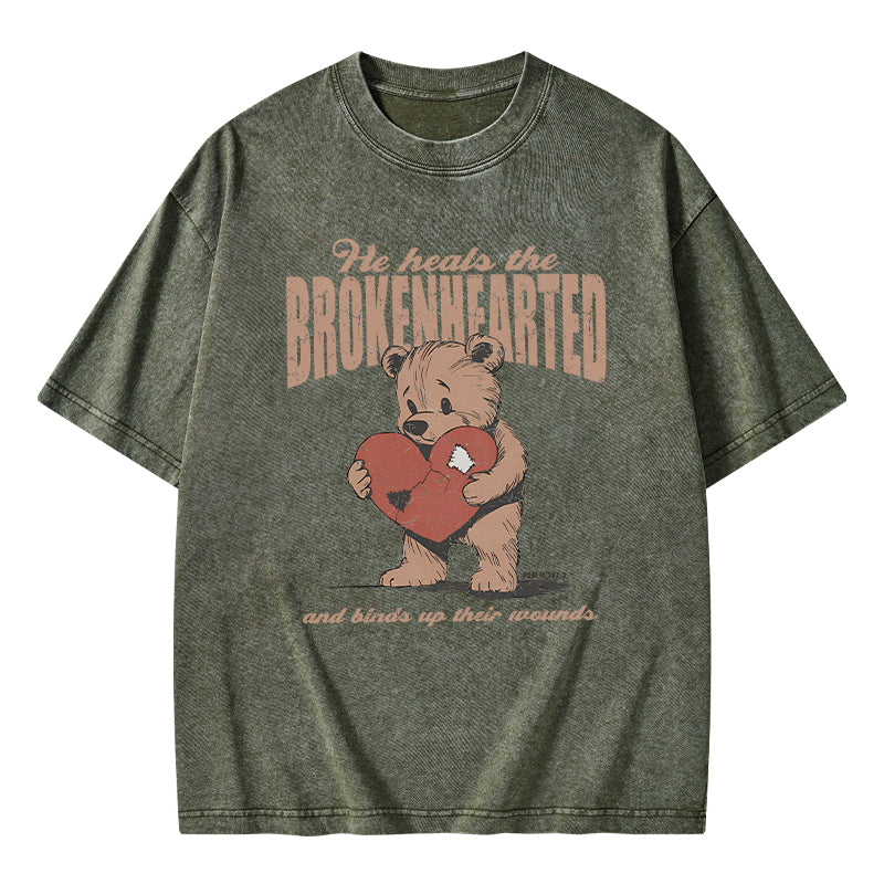 GC-WTS2354 He Heals The Brokenhearted Christian Washed T-Shirt