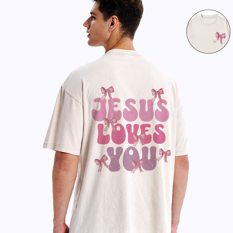 GC-WTSA0109 Jesus Loves You Christian Washed T-Shirt