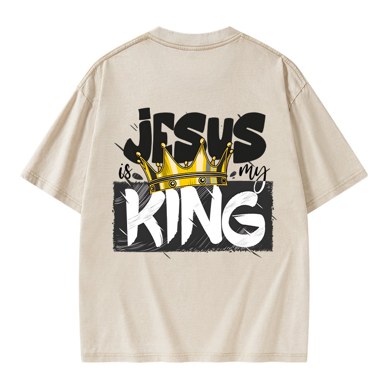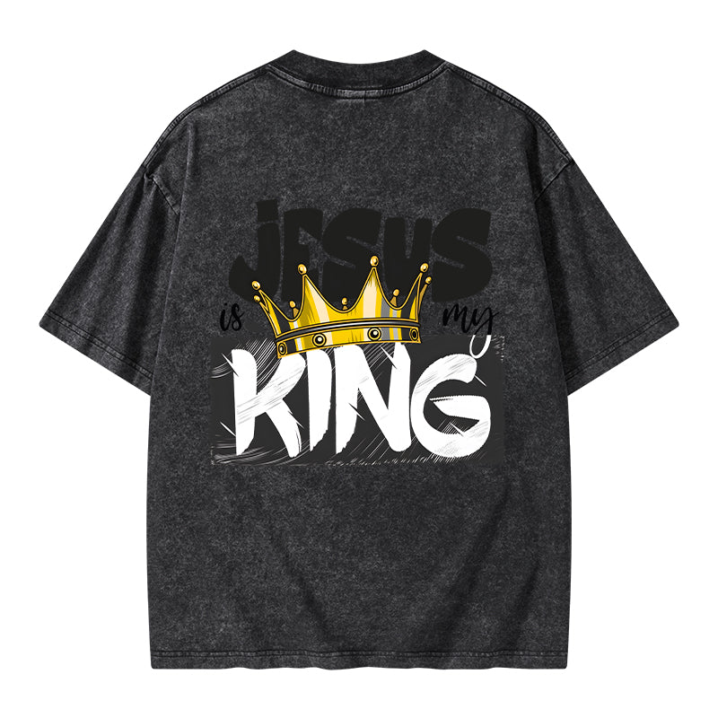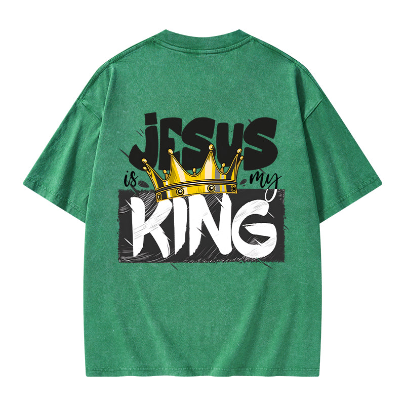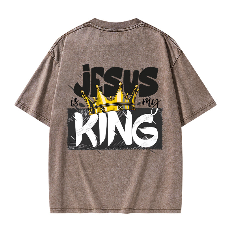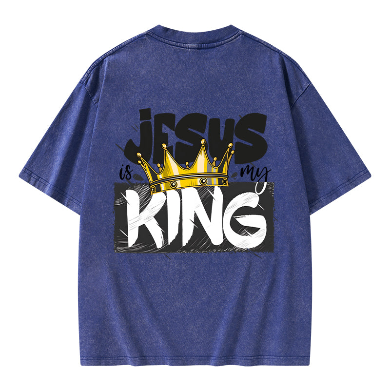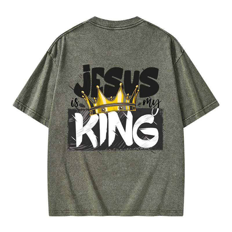 GC-WTSA1025 Jesus Is My King Christian Washed T-Shirt