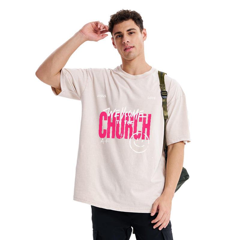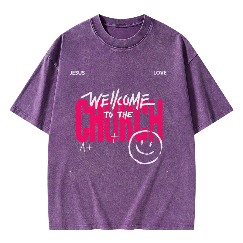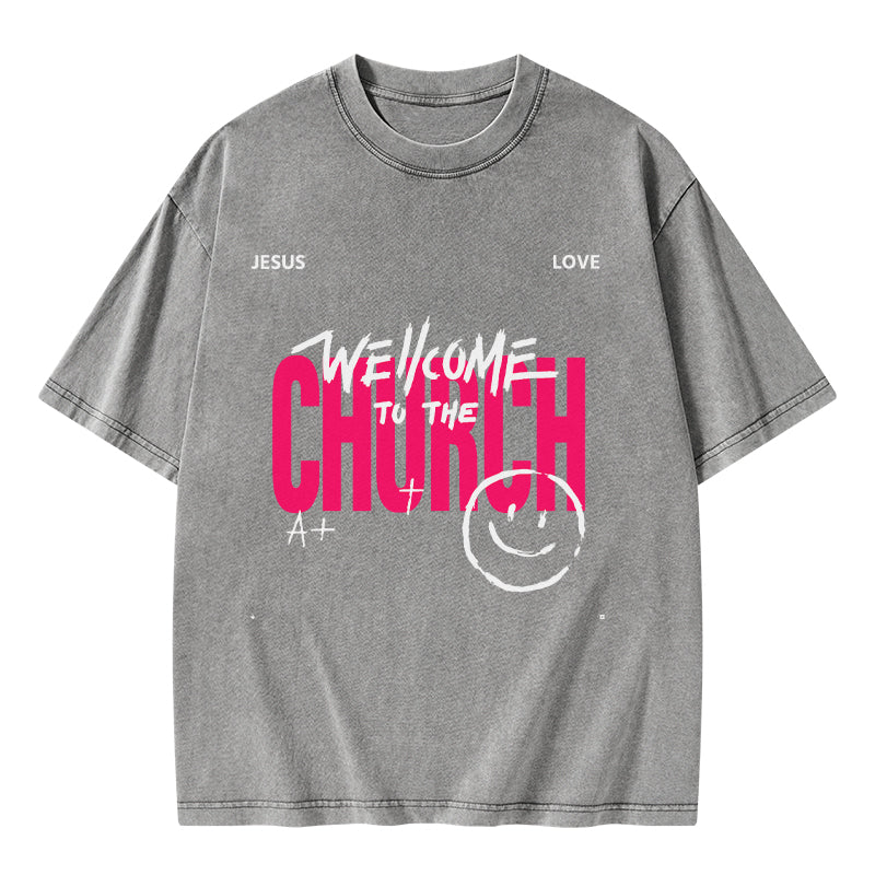 GC-WTSA1061 Welcome To The Church Christian Washed T-Shirt