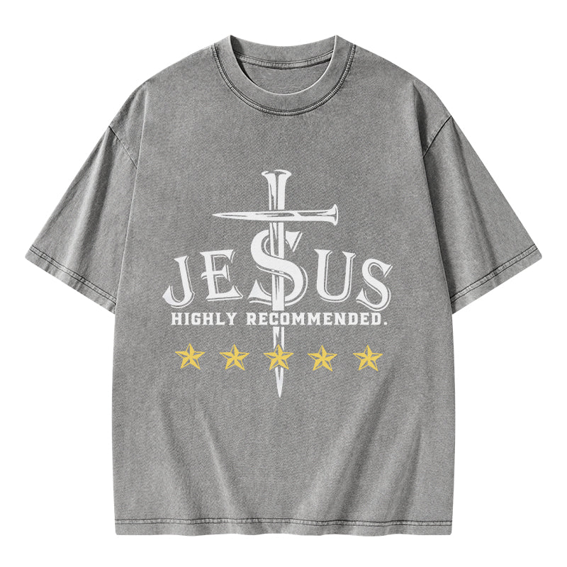 GC-WTSA1141 Jesus Highly Recommended Christian Washed T-Shirt