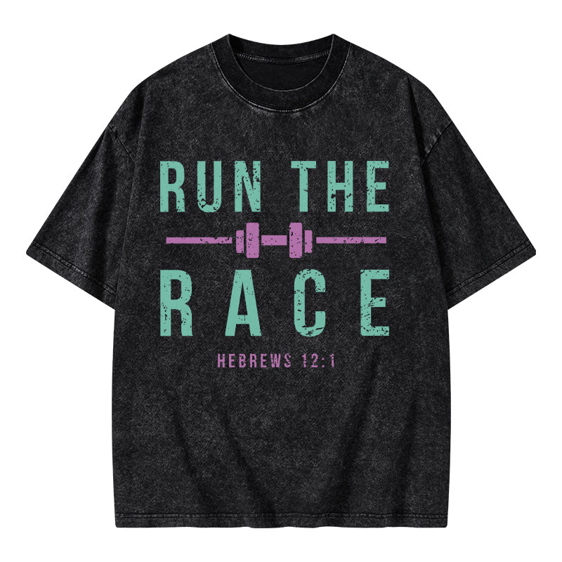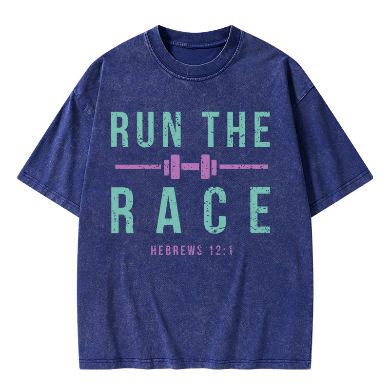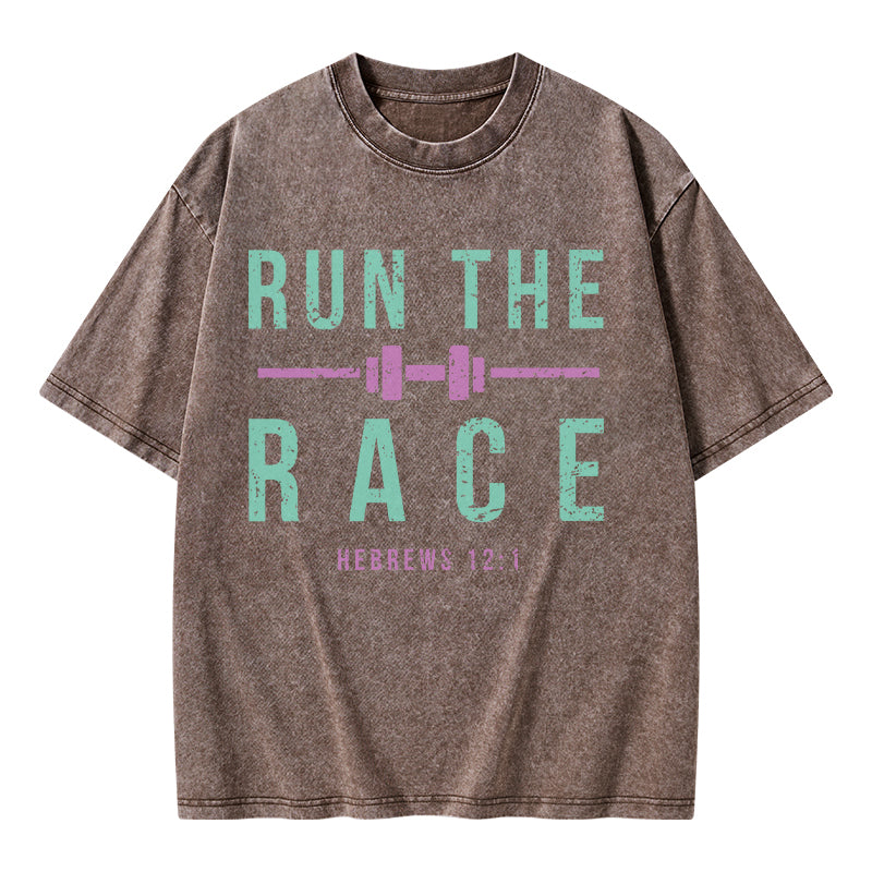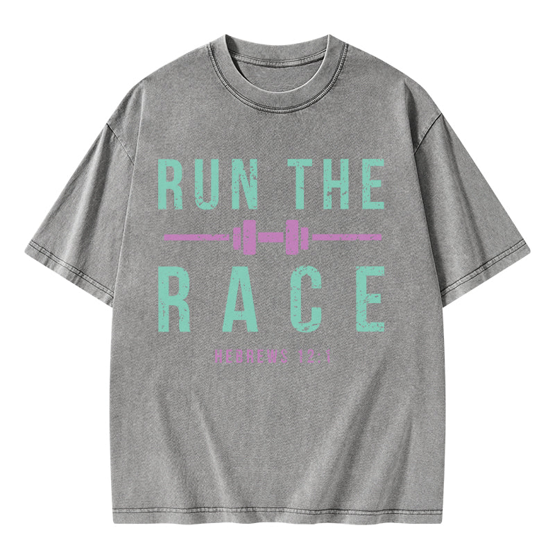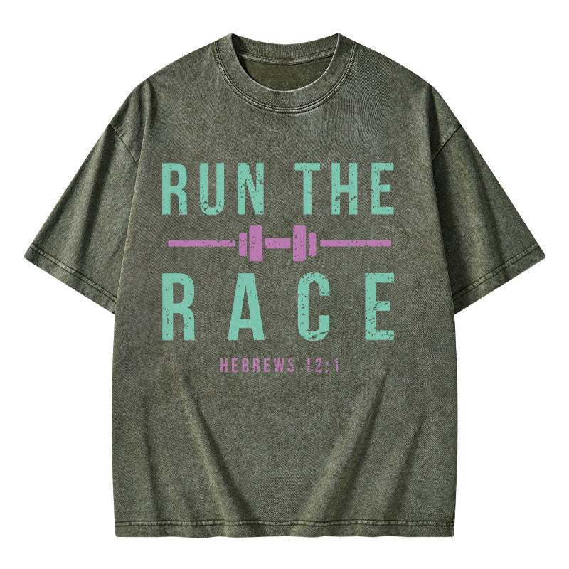 GC-WTSA1478 Run The Race Christian Washed T-Shirt