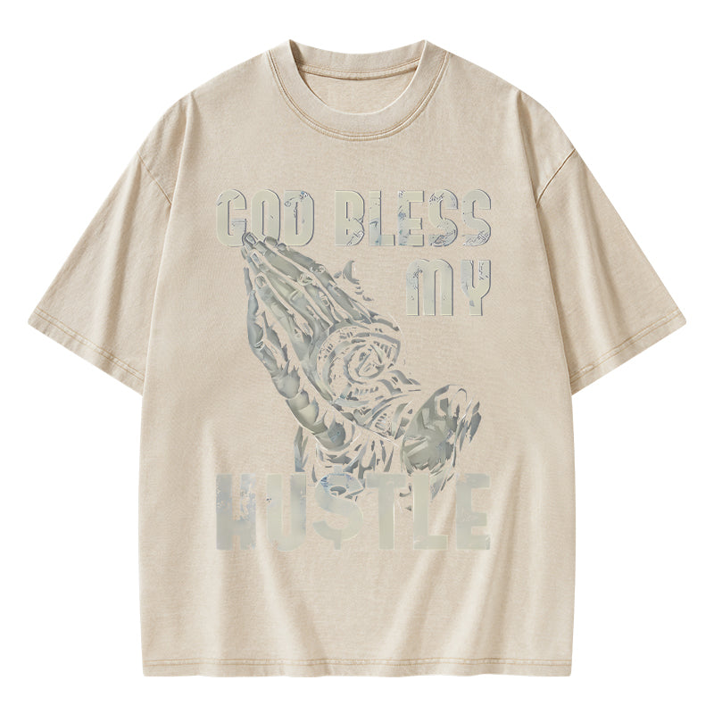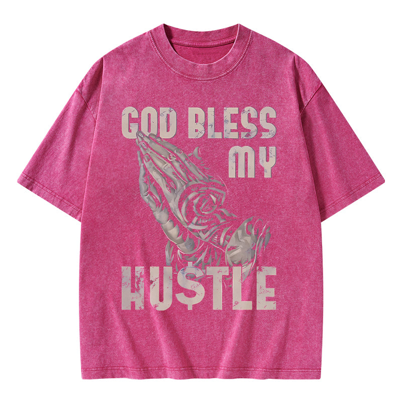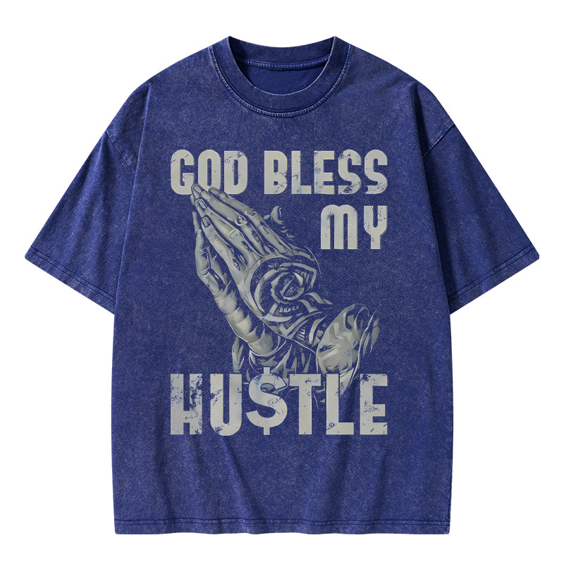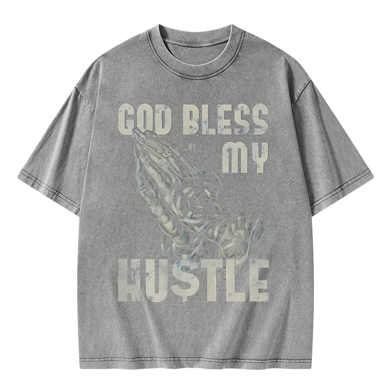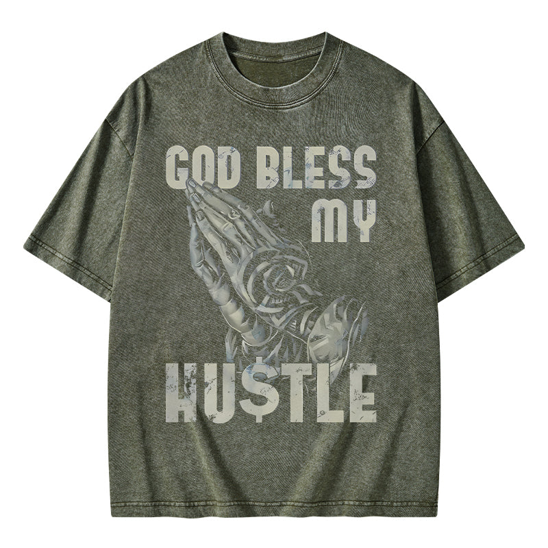 GC-WTSA1644 God Bless My Hustle Christian Washed T-Shirt
