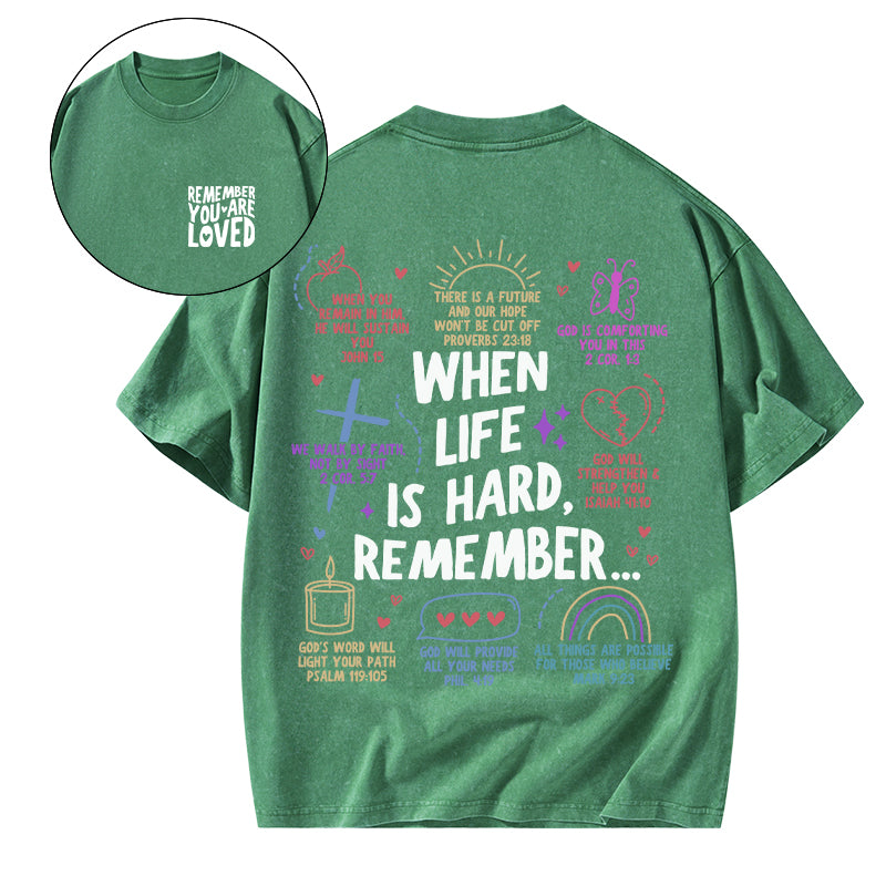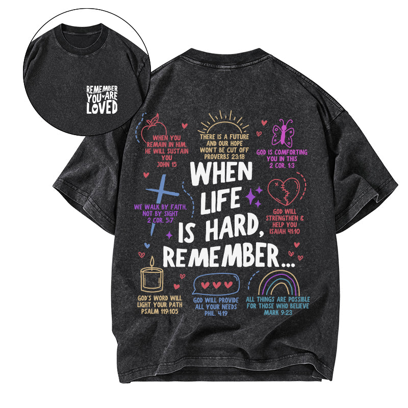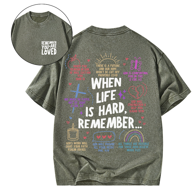 GC-WTSA1657 When Life Is Hard Remenber Christian Washed T-Shirt