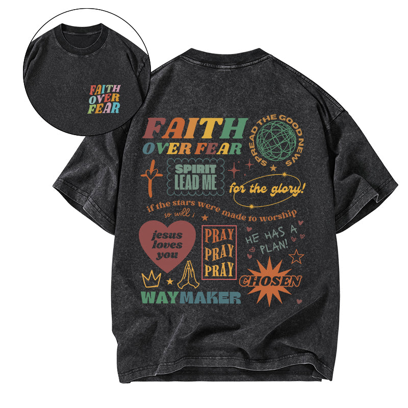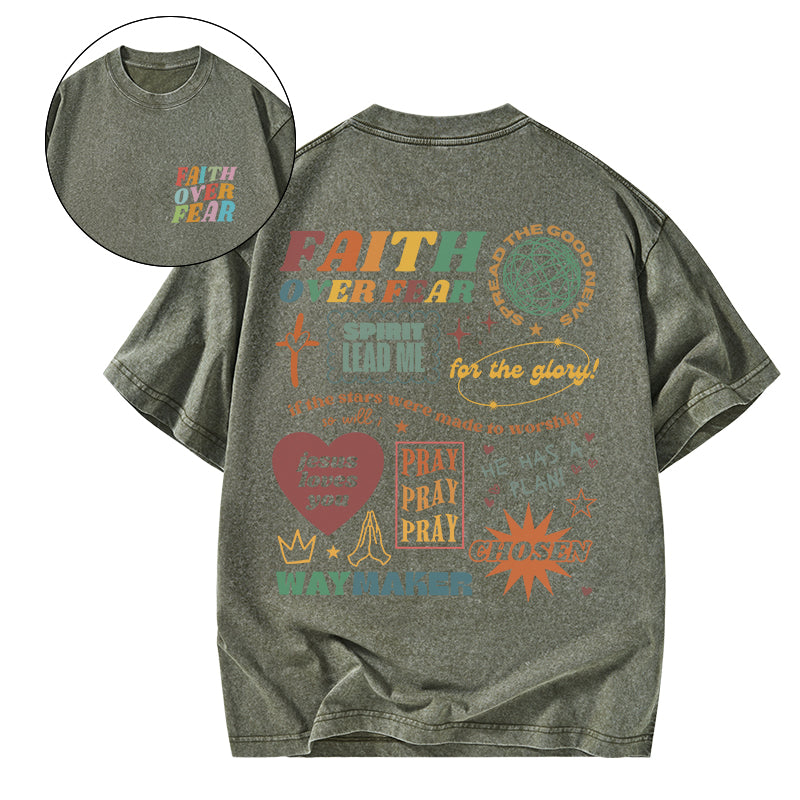 GC-WTSA1669 Faith Over Fear Christian Washed T-Shirt