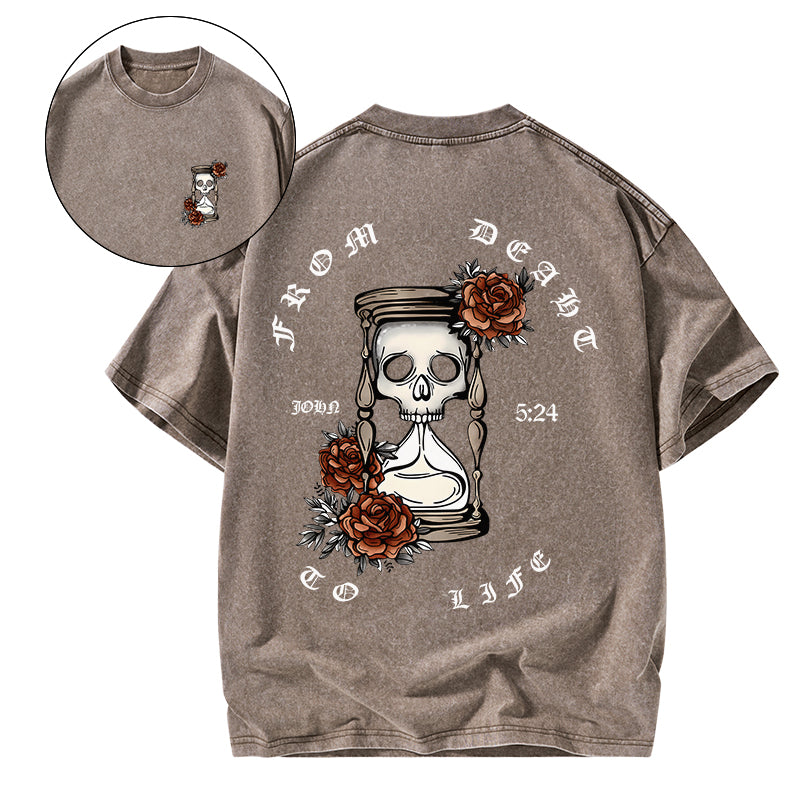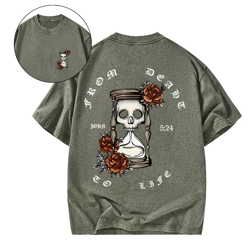 GC-WTSA1821 From Death To Life Christian Washed T-Shirt