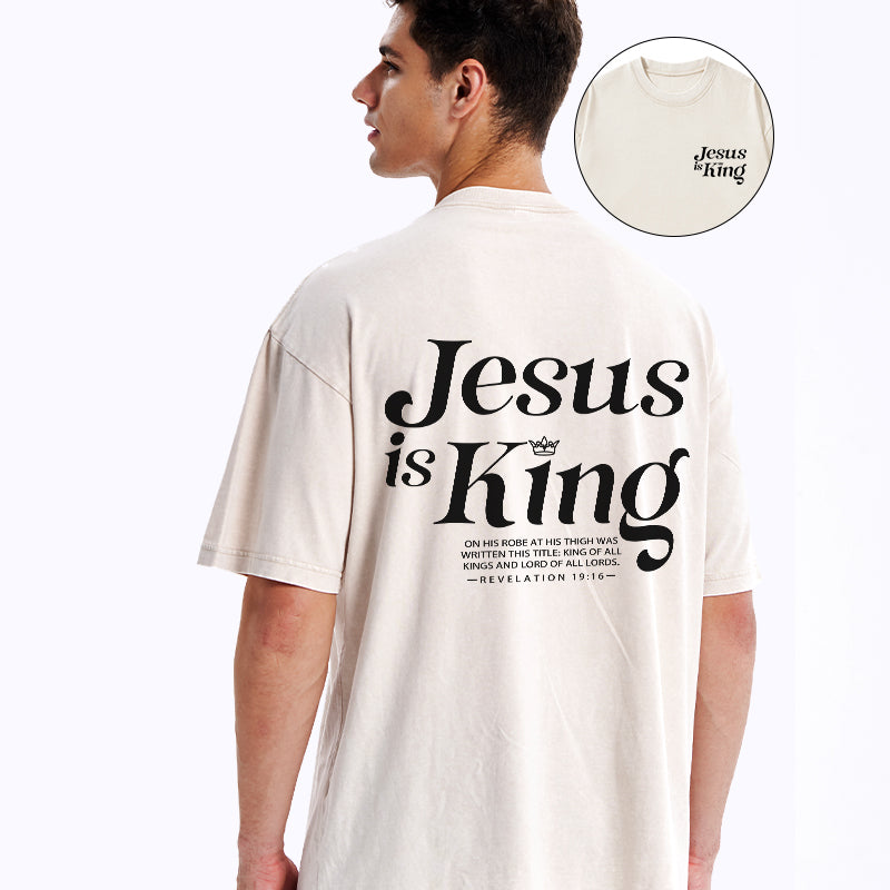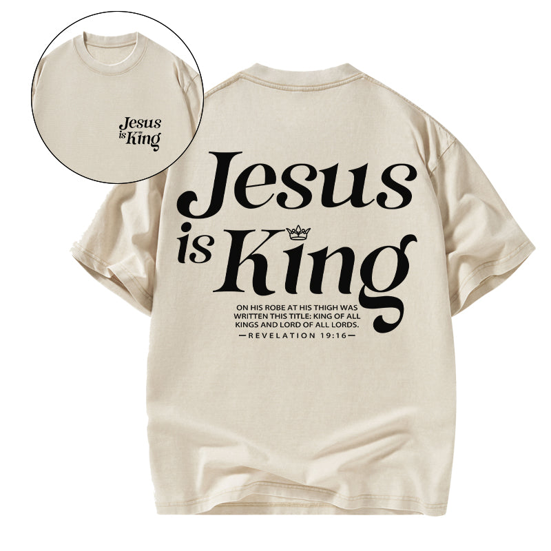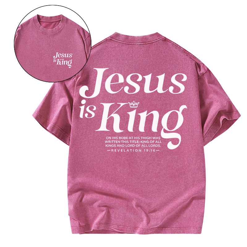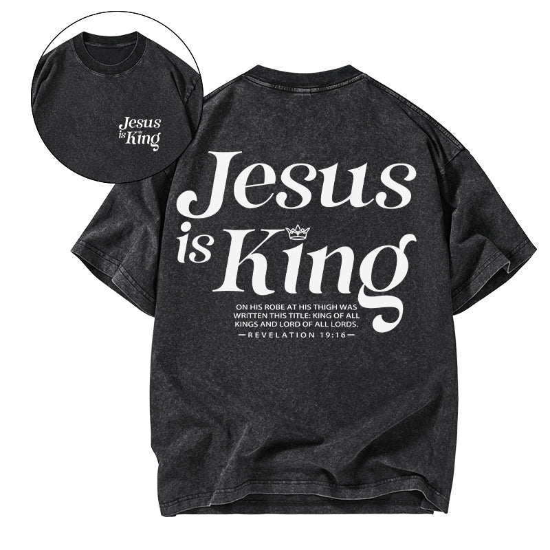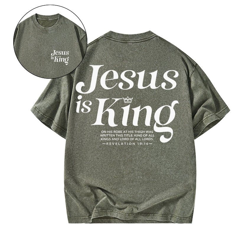 GC-WTSCJX0108 Jesus Is King Christian Washed T-Shirt