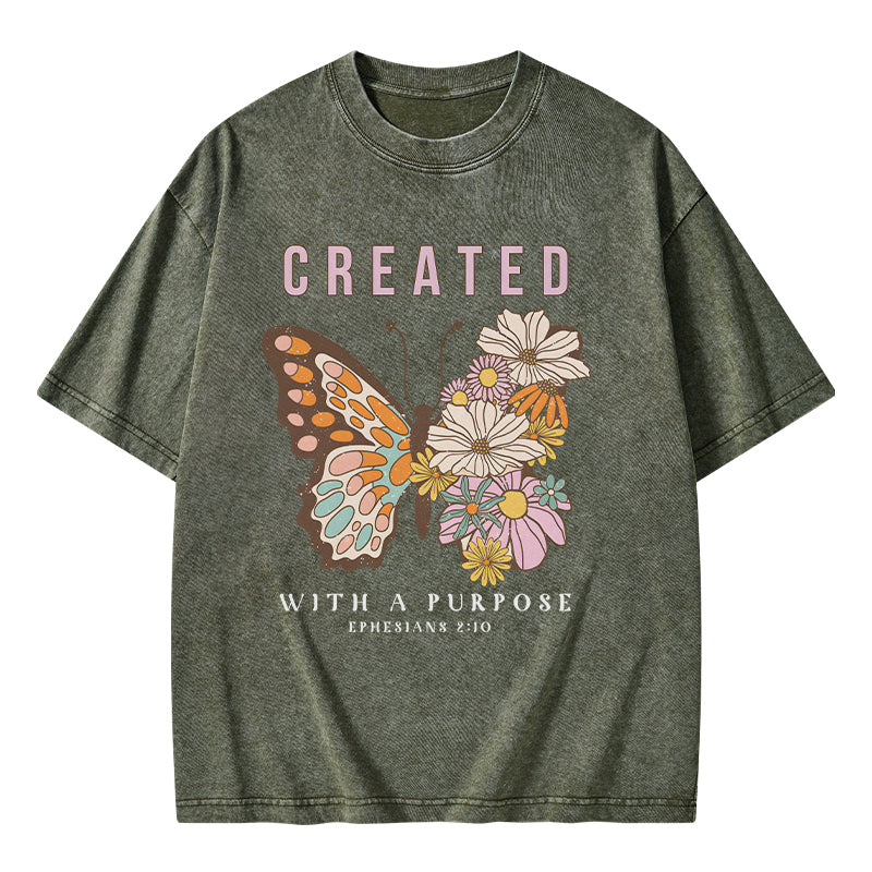 GC-WTSCJX0147 Personalized Created With Purpose Christian Washed T-Shirt