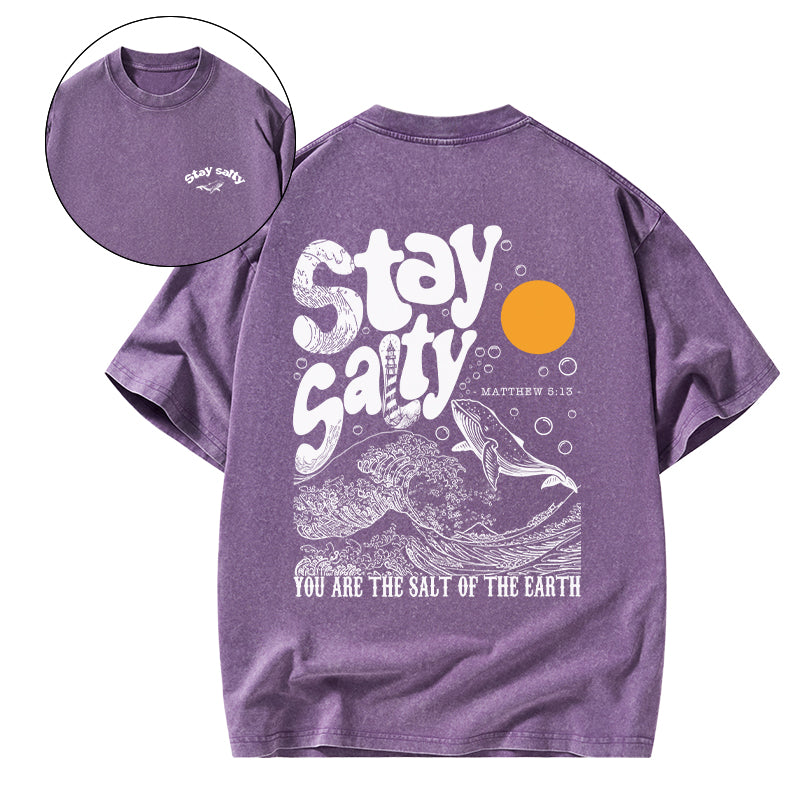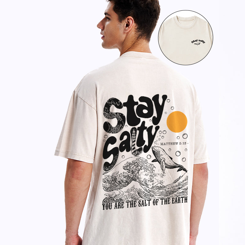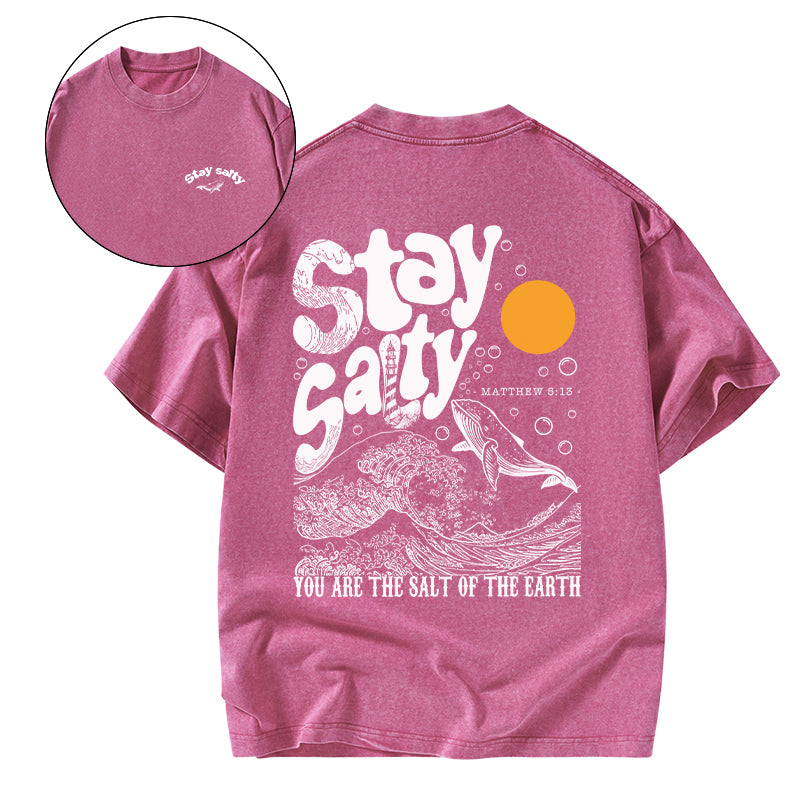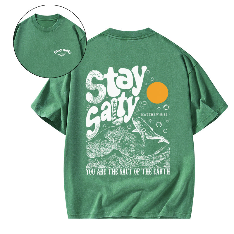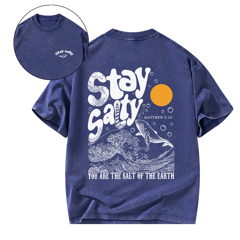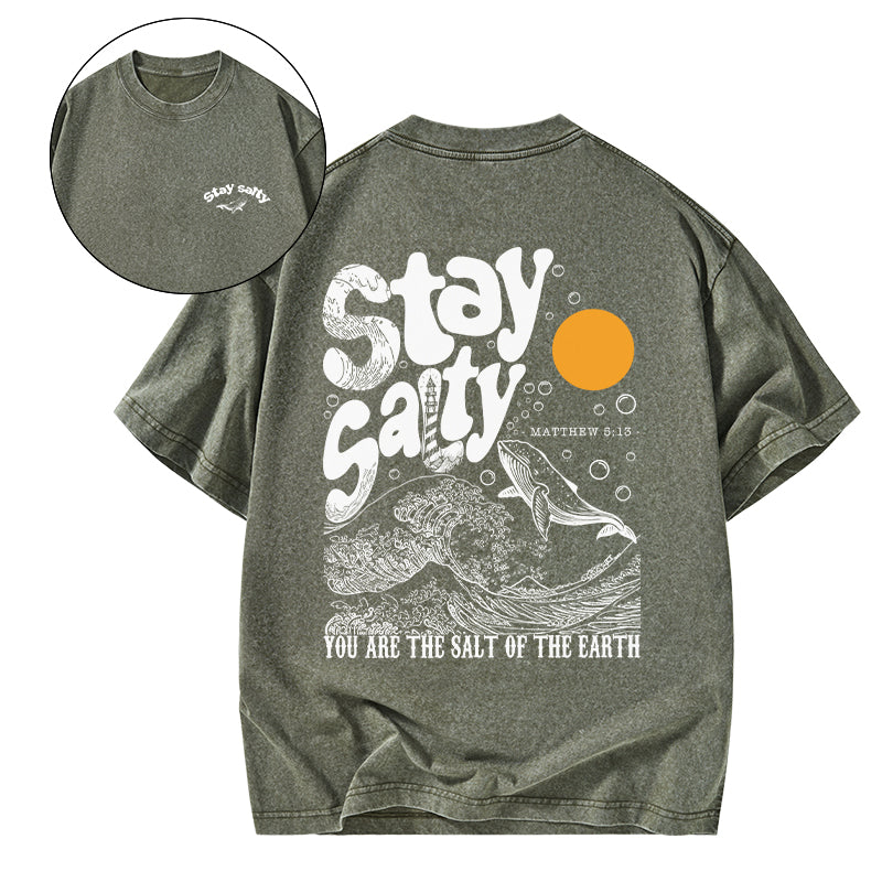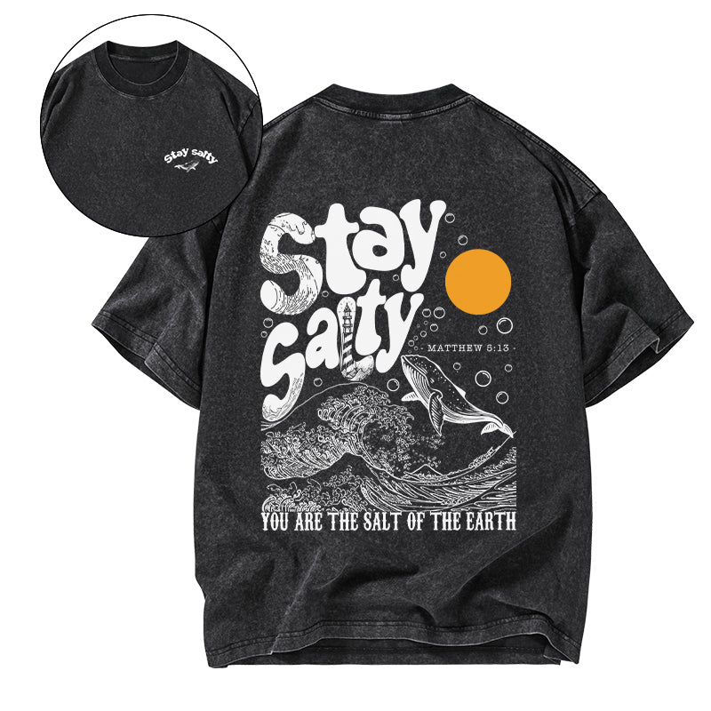 GC-WTSFK0031 Stay Salty Ocean Waves Christian Washed T-Shirt