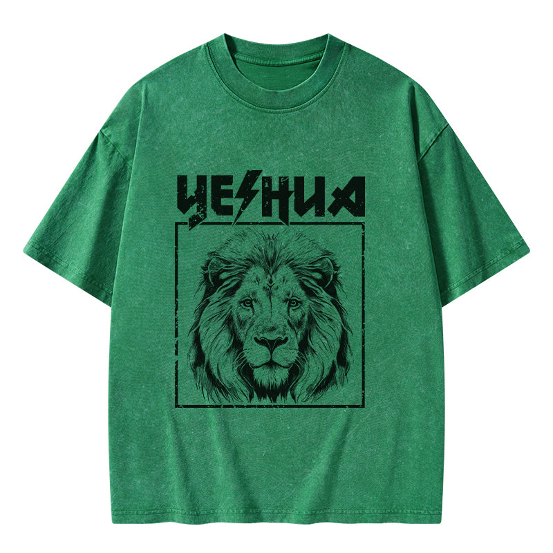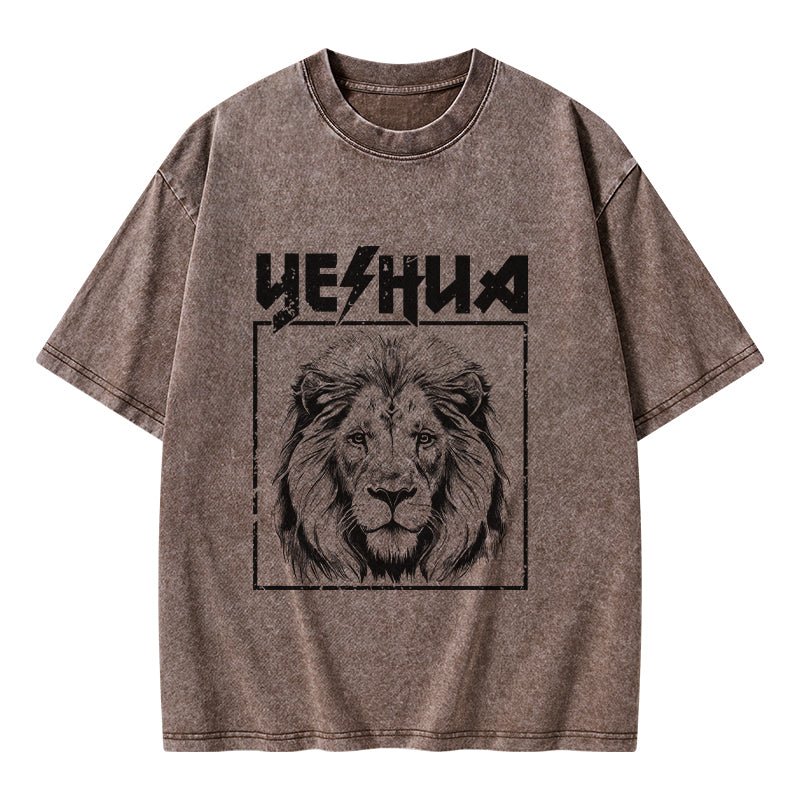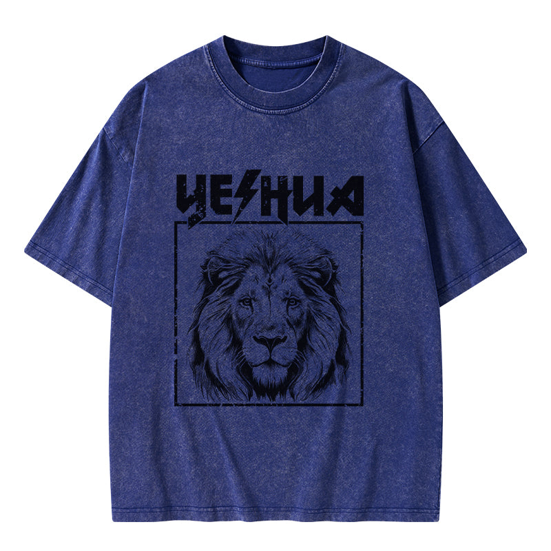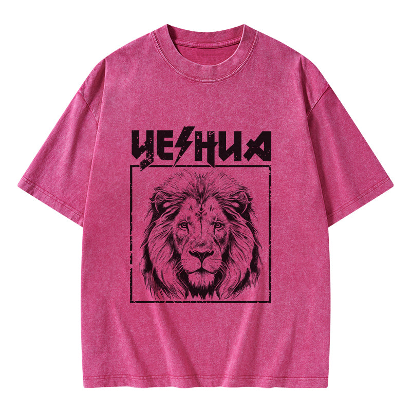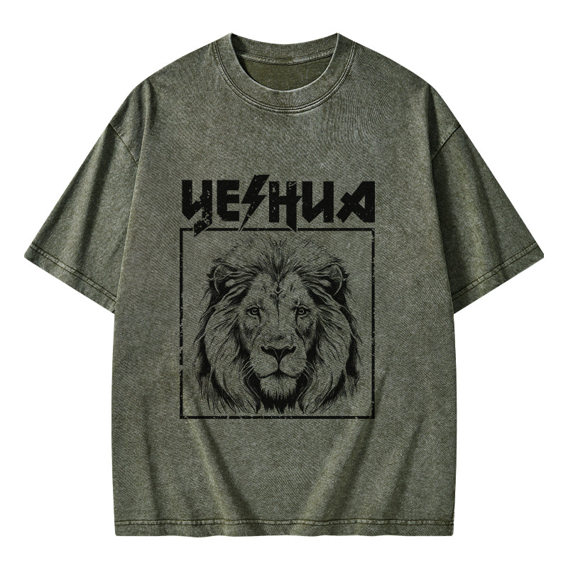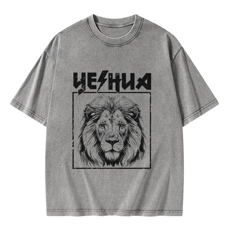 GC-WTSFK24083001 Retro Yeshua Lion Christian Washed T-Shirt