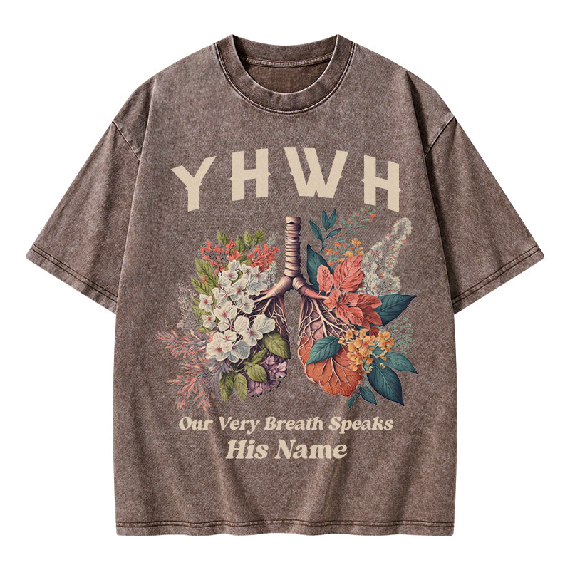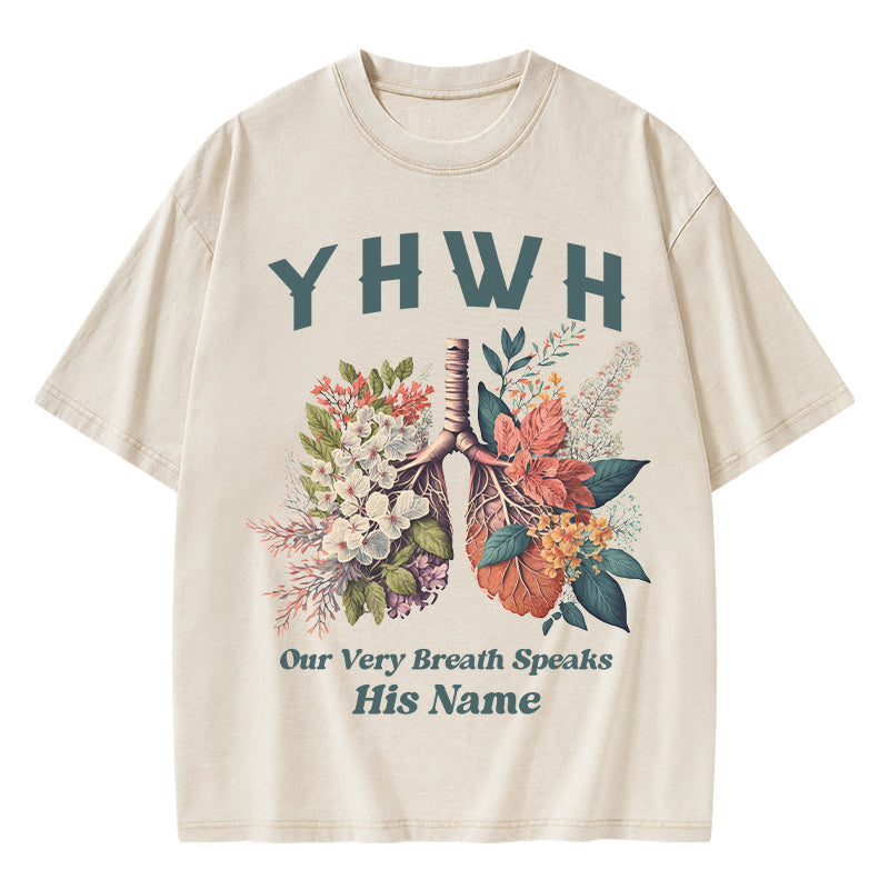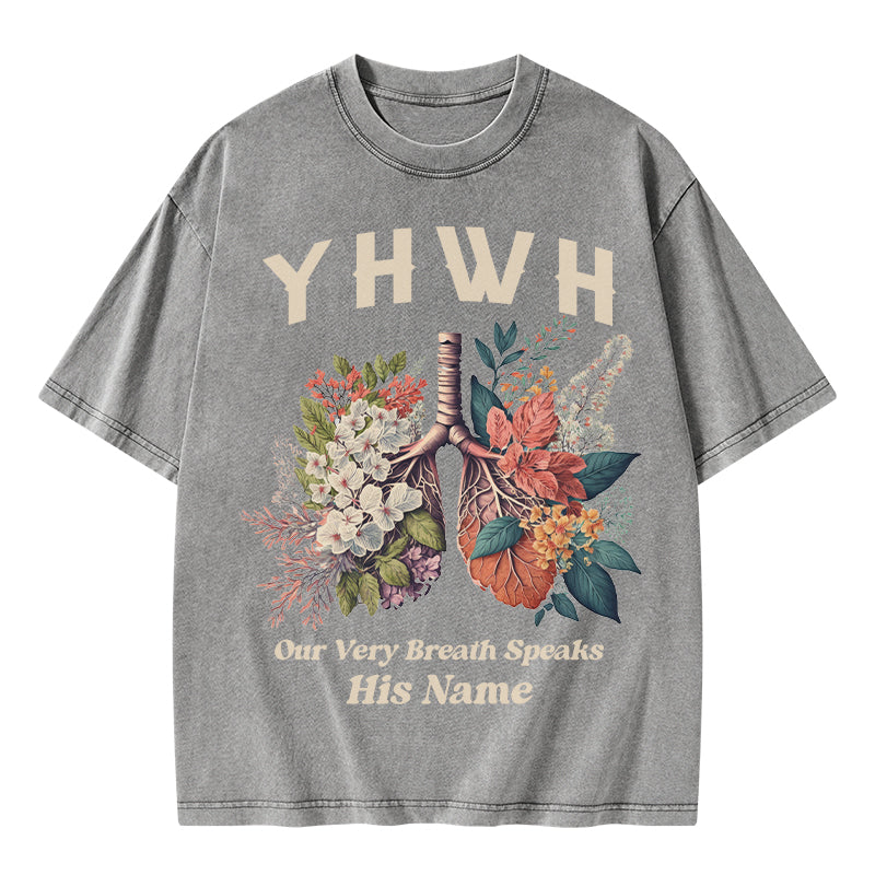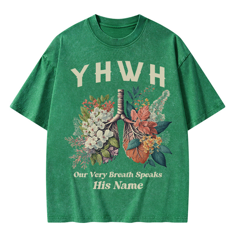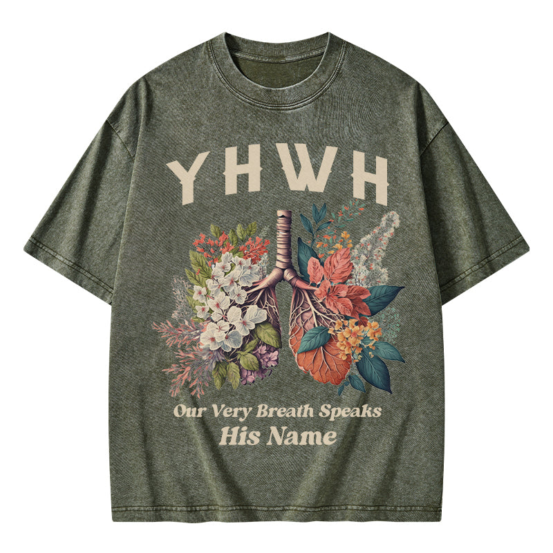 GC-WTSQMJ0020 YHWH Floral Nature Lung Christian Washed T-Shirt