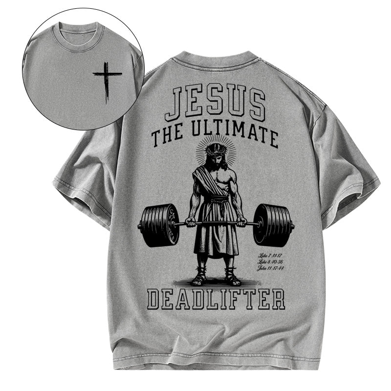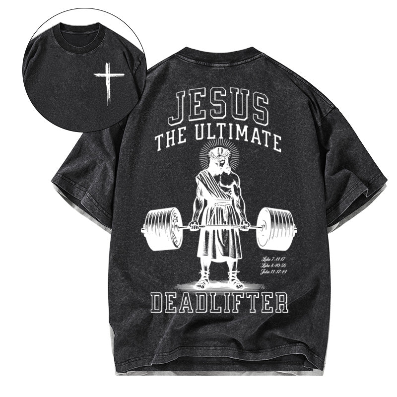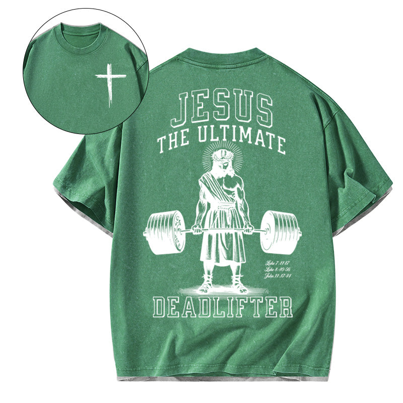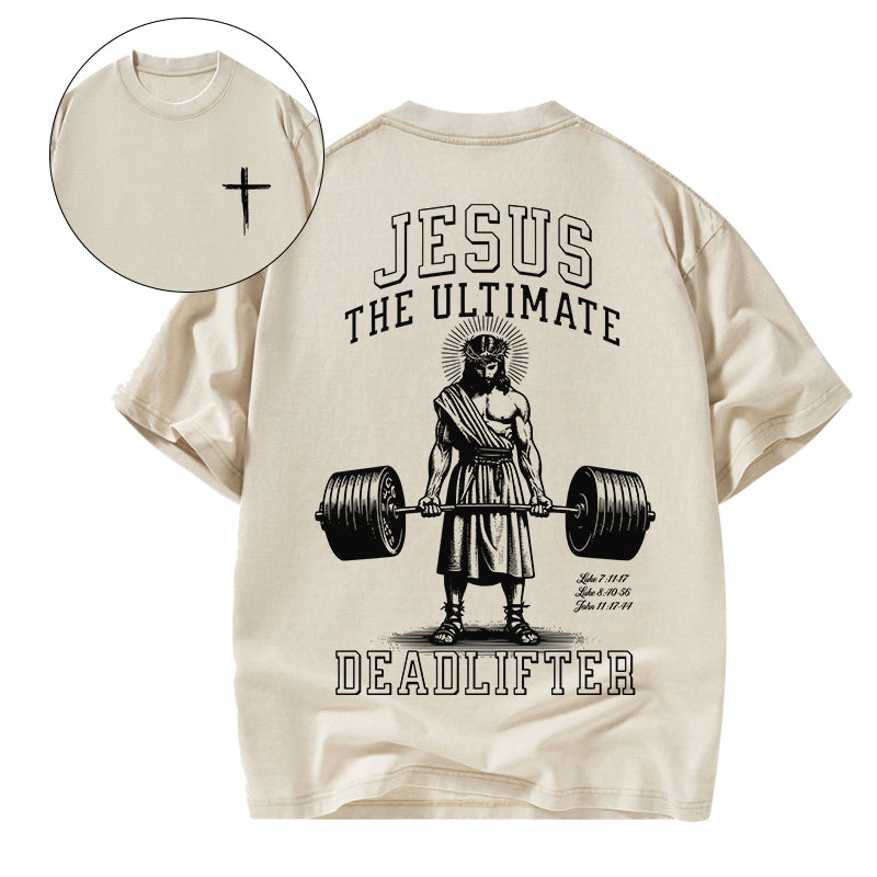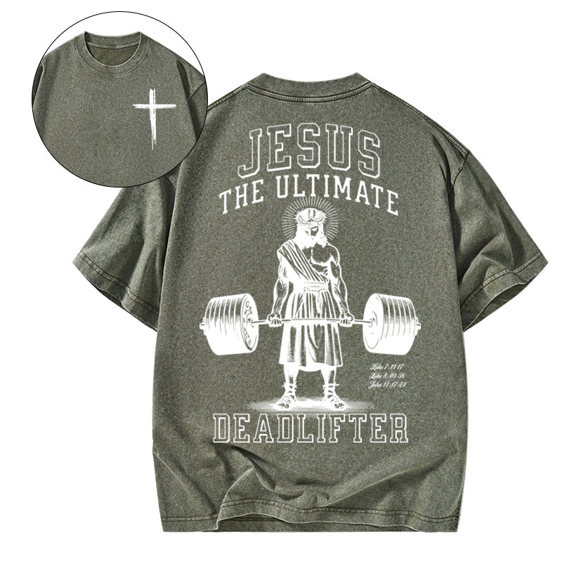 Jesus The Ulimate Deadlifter Chrsitian Washed T-Shirt
